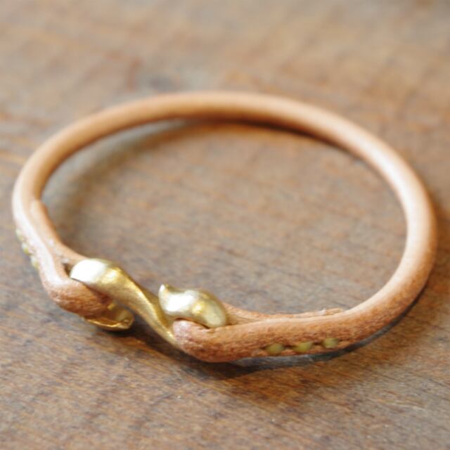 留め金にオリジナルブラス(真鍮)フックを使った丸紐レザーブレスレット。